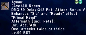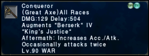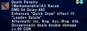 | Stage 3 | 1x Death Penalty Lvl 90 500x Imperial Mythril Pieces 1x Wyrmseeker of Areuhat All T3 ZNM Clears 8x Doomsday |