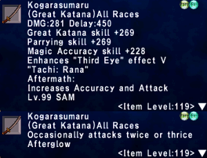 | Stage 6 | 1x Kogarasumaru iLvl 119 Hachimonji |