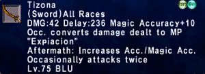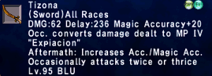 | Stage 3 | 1x Tizona Lvl 90 500x Imperial Mythril Pieces 1x Wyrmseeker of Areuhat All T3 ZNM Clears 8x Claidheamh Soluis |