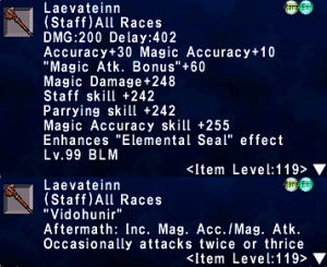 | Stage 6 | 1x Laevateinn iLvl 119 Xoanon |
