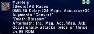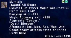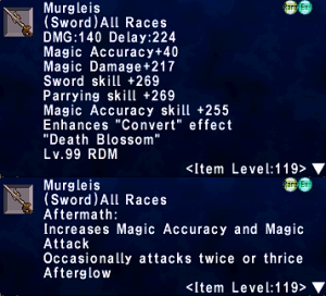 | Stage 3 | 1x Murgleis Lvl 90 500x Imperial Mythril Pieces 1x Wyrmseeker of Areuhat All T3 ZNM Clears 8x Claidheamh Soluis |