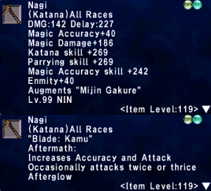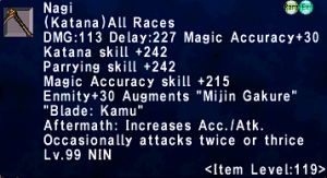 | Stage 3 | 1x Nagi Lvl 90 500x Imperial Mythril Pieces 1x Wyrmseeker of Areuhat All T3 ZNM Clears 8x Izuna |