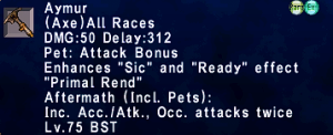 | Stage 3 | 1x Aymur Lvl 90 500x Imperial Mythril Pieces 1x Wyrmseeker of Areuhat All T3 ZNM Clears 8x Kumbhakarna |
