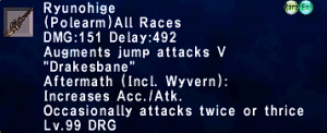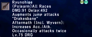 | Stage 3 | 1x Ryunohige Lvl 90 500x Imperial Mythril Pieces 1x Wyrmseeker of Areuhat All T3 ZNM Clears 8x Olyndicu |