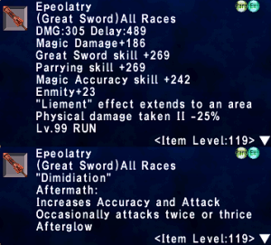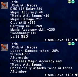 - Due to Idris and Epeolatry not having versions below ILvl 119, they have placeholder weapons in their place for the first 4 stages.