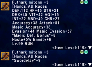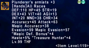 | Hands | x1 Plunderer’s Armlets +2 x3 Handshard: THF x3 Voidhand: THF x3 Macuil Plating |