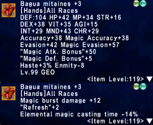 | Hands | x1 Bagua Mitaines +2 x3 Handshard: GEO x3 Voidhand: GEO x3 Macuil Plating |