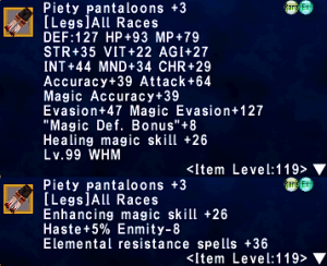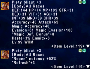 | Body | x1 Piety Bliaut +2 x3 Torsoshard: WHM x3 Voidtorso: WHM x3 Hades' Claw |