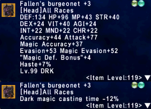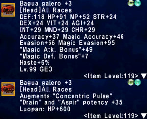 | Head | x1 Bagua Galero +2 x3 Headshard: GEO x3 Voidhead: GEO x3 Defiant Scarf |
