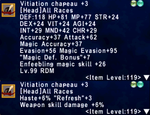| Head | x1 Vitiaion Chapeau +2 x3 Headshard: RDM x3 Voidhead: RDM x3 Defiant Scarf |