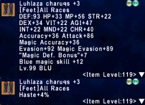 | Legs | x1 Luhlaza Shalwar +2 x3 Legshard: BLU x3 Voidleg: BLU x3 Tartarian Soul |