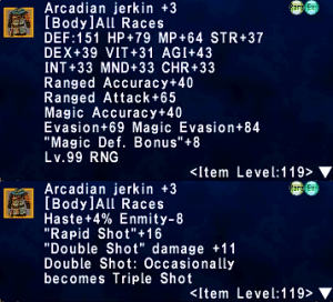 | Body | x1 Mochizuki Chainmail +2 x3 Torsoshard: NIN x3 Voidtorso: NIN x3 Hades' Claw |