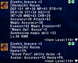 | Hands | x1 Glyphic Bracers +2 x3 Handshard: SMN x3 Voidhand: SMN x3 Macuil Plating |
