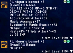 | Head | x1 Plunderer's Bonnet +2 x3 Headshard: THF x3 Voidhead: THF x3 Defiant Scarf |