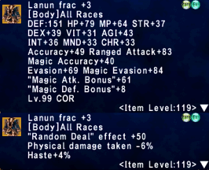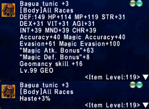 | Body | x1 Bagua Tunic +2 x3 Torsoshard: GEO x3 Voidtorso: GEO x3 Hades' Claw |
