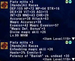 | Hands | x1 Piety Mitts +2 x3 Handshard: WHM x3 Voidhand: WHM x3 Macuil Plating |